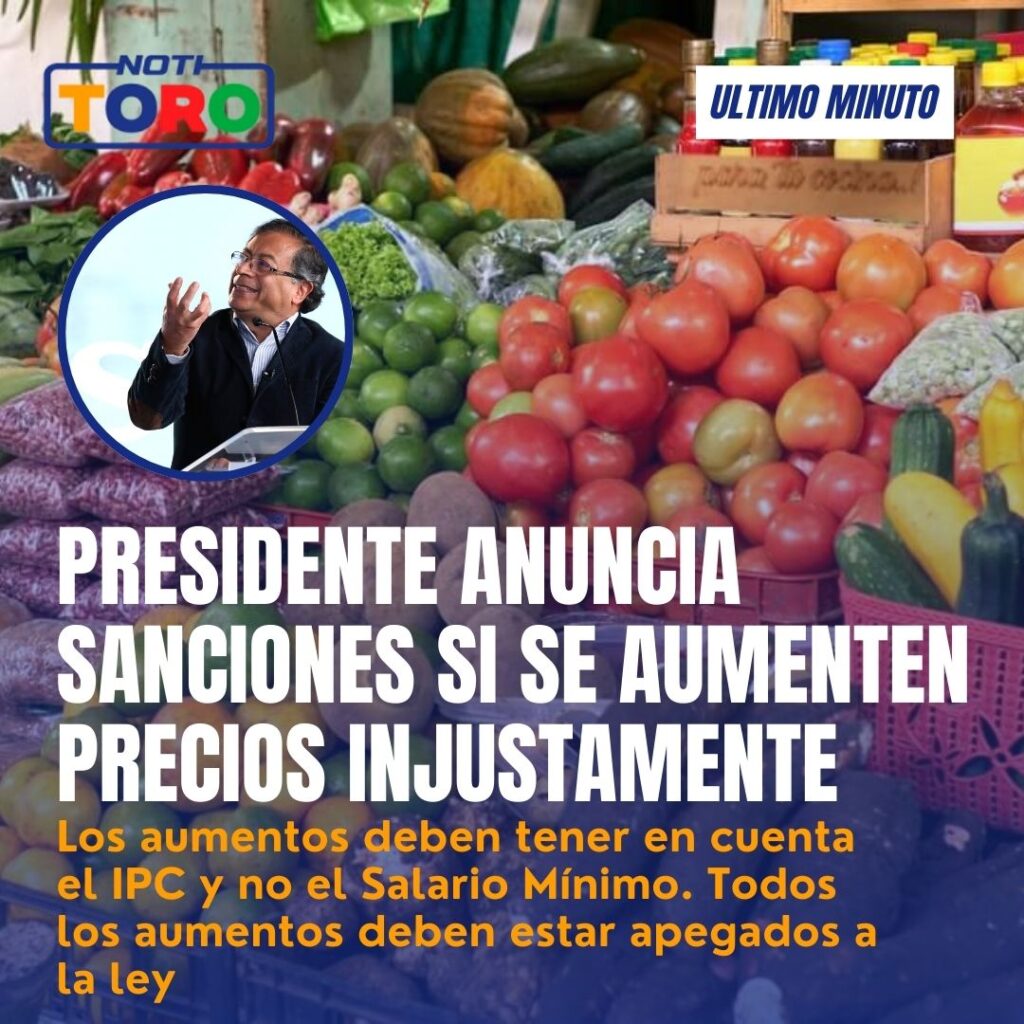 El presidente Gustavo Petro advirtió sobre sanciones para quienes, sin justificación, aumenten sus precios de acuerdo al salario mínimo.