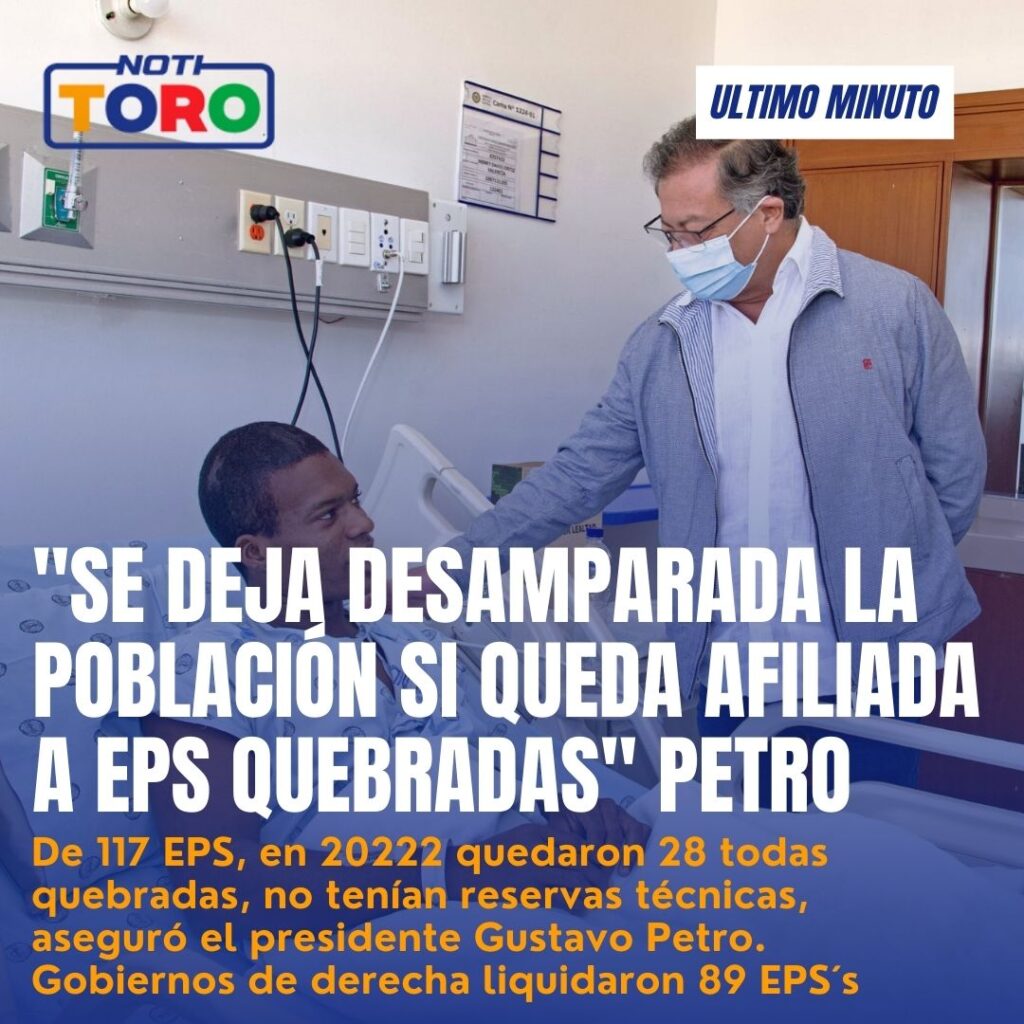 De 117 EPS quedaron 28 todas quebradas, no tenían reservas técnicas, aseguró el presidente Gustavo Petro. Gobiernos de derecha liquidaron 89
