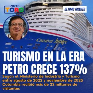 Según el Ministerio de Industria y Turismo entre agosto de 2022 y noviembre de 2025 Colombia recibió más de 22 millones de visitantes