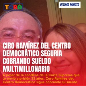 A pesar de la condena de la Corte Suprema que lo envió a prisión 23 años, Coro Ramírez del Centro Democrático sigue cobrando su sueldo