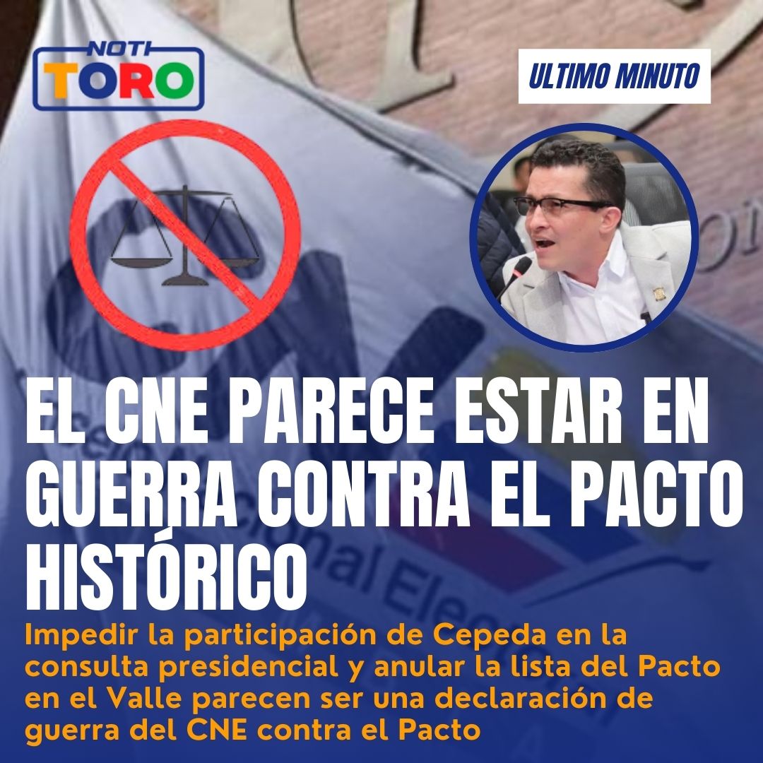 Indignación han despertado dos decisiones del CNE frente al Pacto Histórico. Afectar la candidatura de Cepeda y anular la lista del Valle.