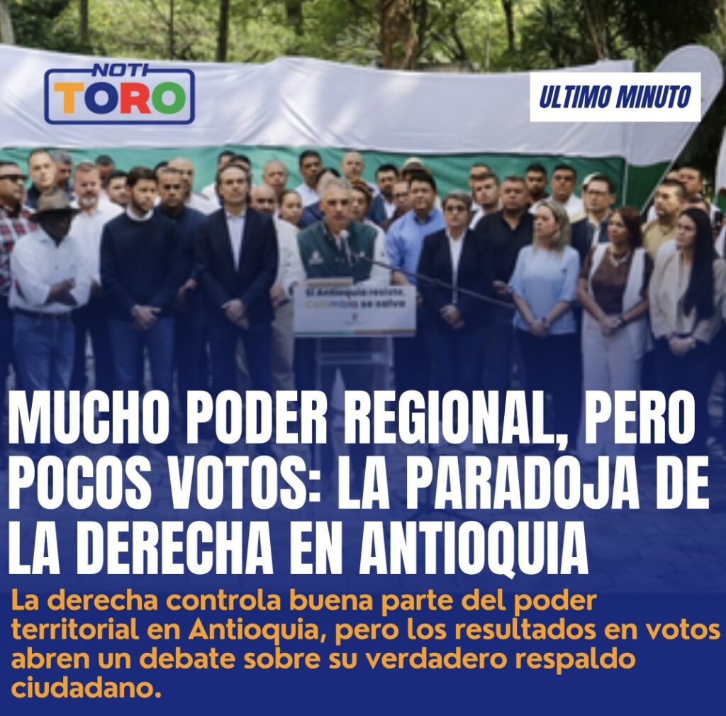 Una reflexión que comenzó a circular en redes sociales volvió a poner sobre la mesa una pregunta incómoda para la derecha antioqueña: ¿qué tan fuerte es realmente su respaldo ciudadano? El debate surgió luego de que varios usuarios señalaran una aparente contradicción entre el poder institucional que tienen algunos sectores políticos en Antioquia y los … Sigue leyendo La incómoda pregunta para la derecha en Antioquia