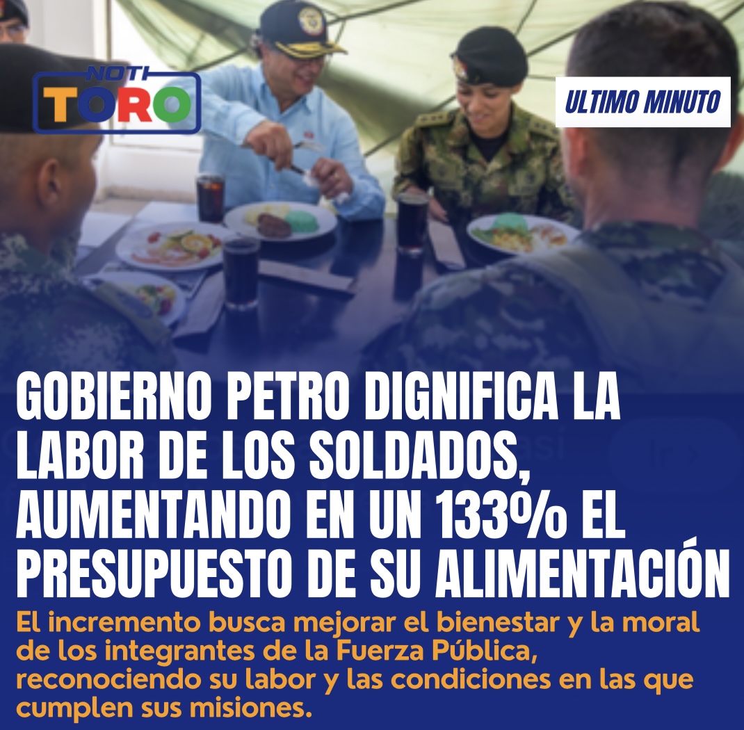 El Gobierno de Gustavo Petro elevó la partida diaria para alimentación de militares de $9.173 en 2021 a $21.400 en 2026, un incremento que busca mejorar las condiciones de vida y el bienestar de quienes integran la Fuerza Pública.