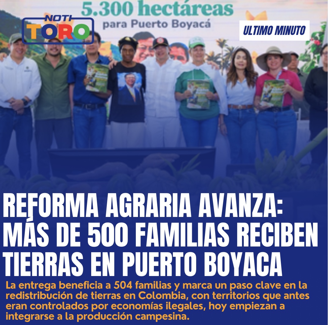 En un hecho que marca un giro histórico en uno de los territorios más golpeados por la violencia, el presidente Gustavo Petro llegó a Puerto Boyacá para oficializar la entrega de 5.300 hectáreas de tierra a 504 familias campesinas, en el marco de la Reforma Agraria.